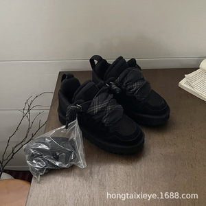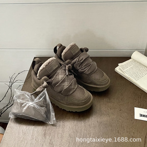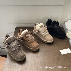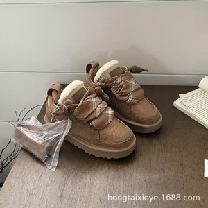 桑坡村新款雪地靴女梅尔休闲系带短靴子棉鞋