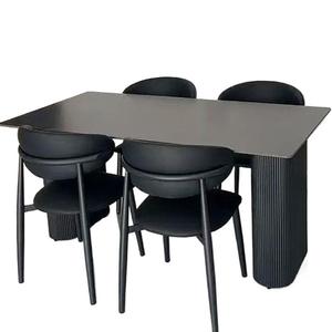 现代简约黑色岩板餐桌餐桌椅组合家用小户型长方形意式组合饭桌椅