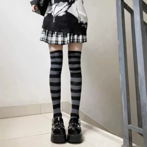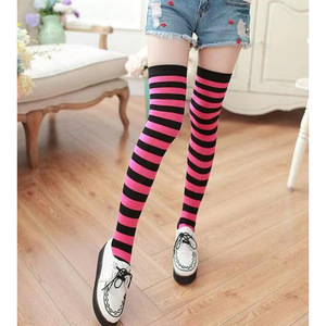 袜子长筒袜女士日系蓝白条纹过膝袜大腿袜子COSPLAY动漫女袜批发