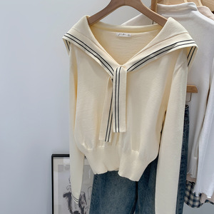 设计感海军领系带长袖针织衫女装韩版早秋2025新款学院风单穿上衣