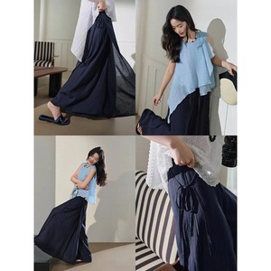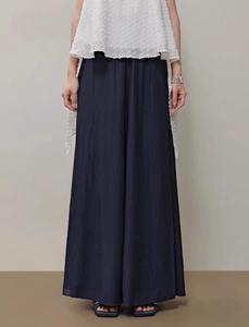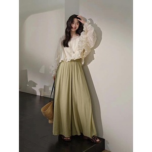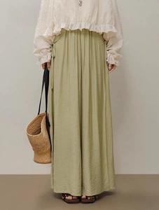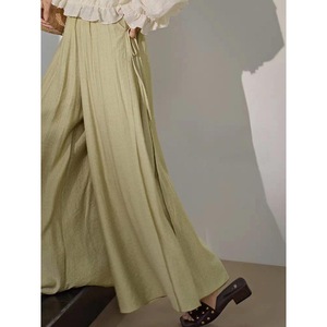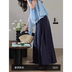 藏蓝色肌理垂感休闲裤女2025秋季新款绿色慵懒阔腿裙裤长裤春