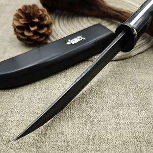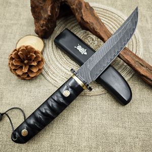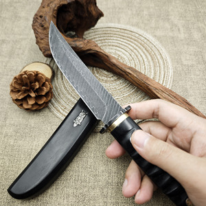 热销户外大马士革钢猫头鹰木鞘直刀硬度手工刀野营登山切肉水果刀