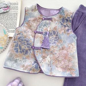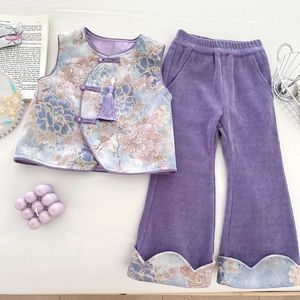 【预售】新款2025女小童秋季中国风爆款套装新中式马甲长袖微喇裤