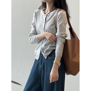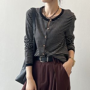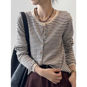 条纹针织开衫外套女春秋新款设计感小众上衣外搭薄款圆领长袖毛衣