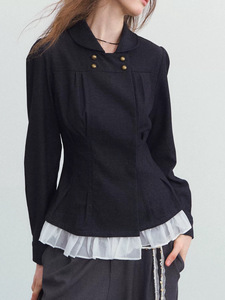 SPEAR YOUTH“无可替代”双排扣牛仔打褶收腰衬衫通勤上衣外套