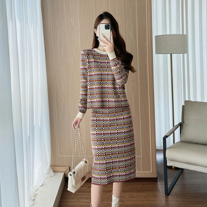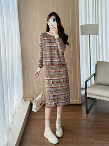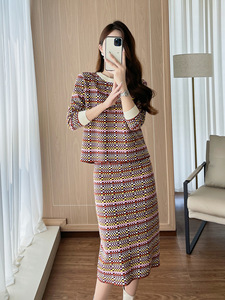 秋冬季提花针织上衣过膝半身裙两件套装裙女小香风时尚休闲套装女