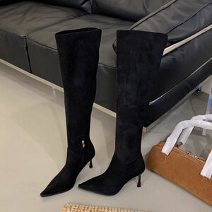 过膝长靴女两穿大筒围2025年秋冬新款绒面尖头细跟高跟褶皱堆堆靴