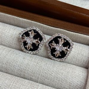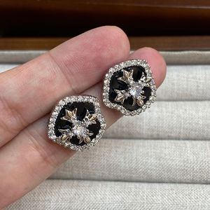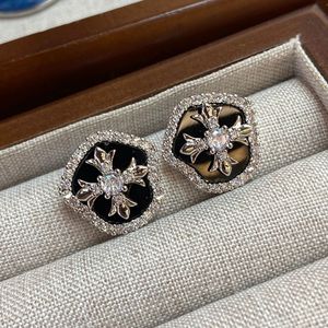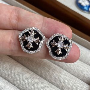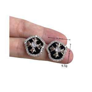 S925银黑色十字架耳环女2025年新款潮复古镶钻方形耳钉女