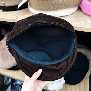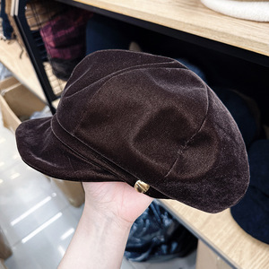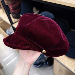 批发韩国2025年早秋新款丝绒纯色简约风报童帽大头围显脸小画家帽