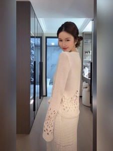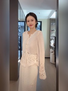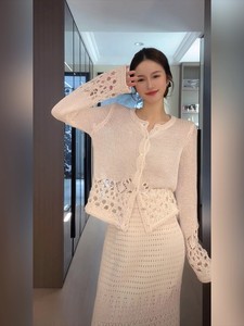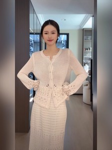 复古风高级感重工镂空针织钩花宽松显瘦百搭长袖开衫加半身裙套装