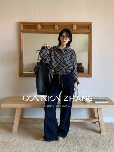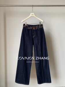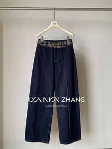 CZ ZHANG秋高腰贴布阔腿牛仔裤女度假风百搭休闲直筒休闲裤B31907