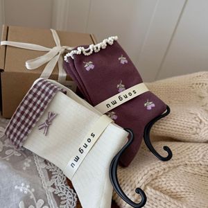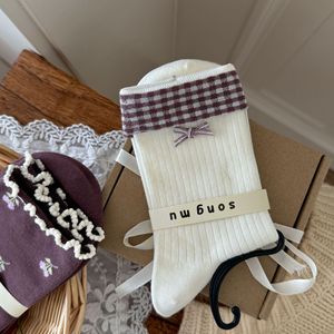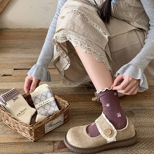 梅果紫系列“无骨袜子女中筒袜秋冬韩系少女蝴蝶结可爱复古堆堆袜