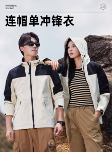 秋冬季户外运动休闲连帽冲锋衣夹克防水耐刮羽纱网衬男女单冲外套