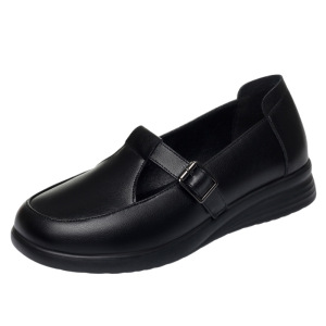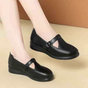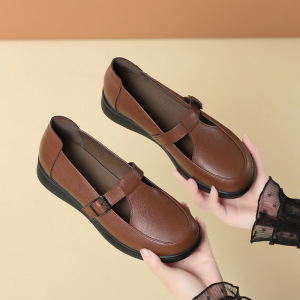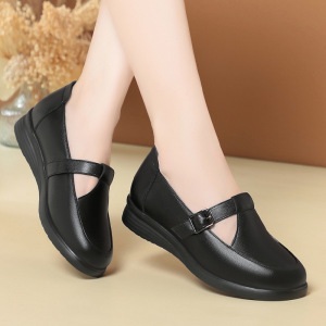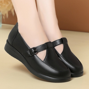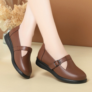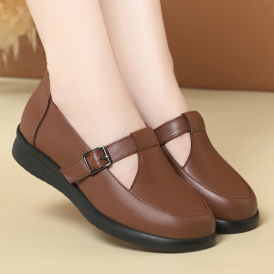 春秋女鞋软底百搭妈妈鞋中老年舒适皮鞋老年人单鞋丁字鞋一件代发