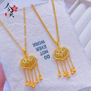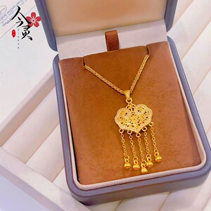 【高保色】金店同款古法沙金镶钻璎珞锁吊坠平安如意锁挂坠批发