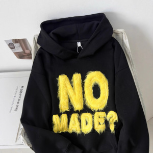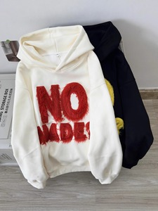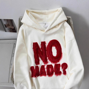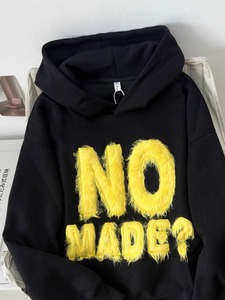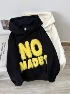 美式复古高街毛绒字母刺绣连帽薄款卫衣男女秋冬宽松长袖情侣帽衫