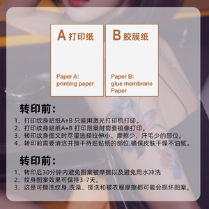 A4纹身贴底纸工厂喷墨激光打印机diy个人定制免光油套印准脱模快