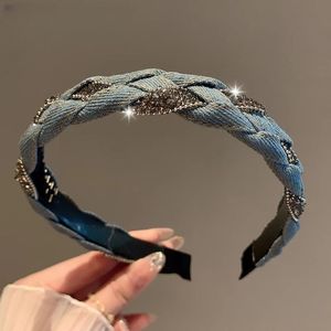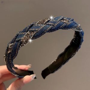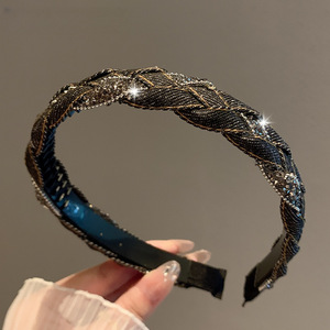 牛仔蓝色水钻发箍女头箍压发卡发捆头饰麻花辫高级感带齿防滑时尚