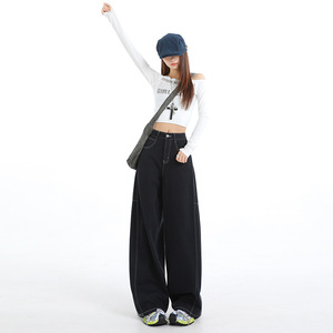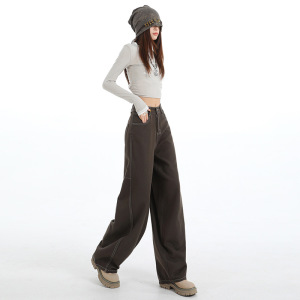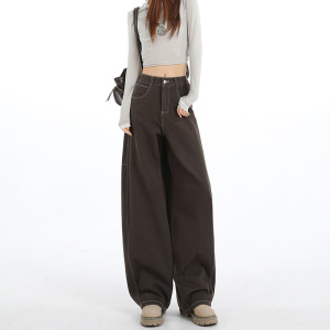 阔腿弯刀牛仔裤女2025新款秋季飒高腰显瘦宽松直筒裤子女款A7118