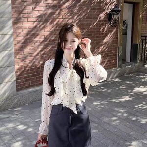 2025新款法式高级感荷叶边波点衬衫女春季设计感绑带宽松别致上衣