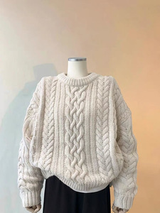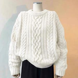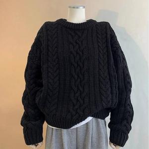 软糯黑色麻花毛衣女秋季宽松慵懒风加厚感外穿套头上衣针织衫