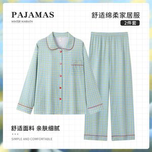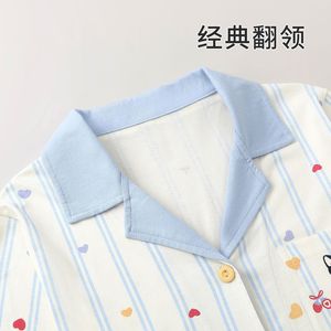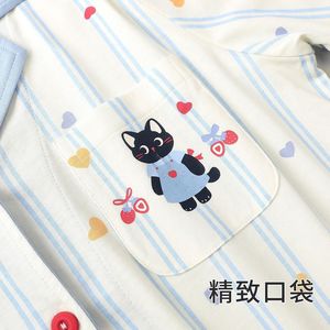 条纹睡衣女长袖长裤全棉卡通猫咪网红家居服纯棉外穿家居服套装