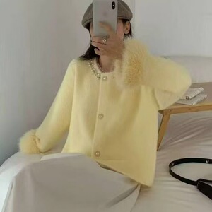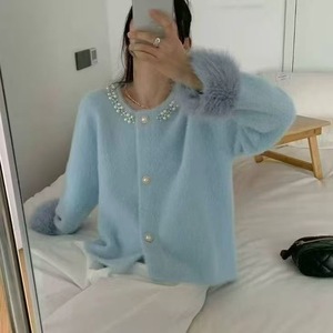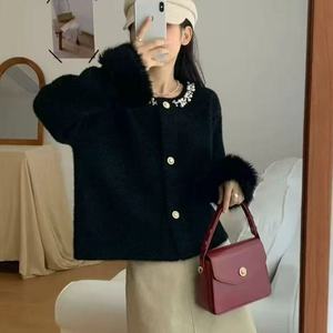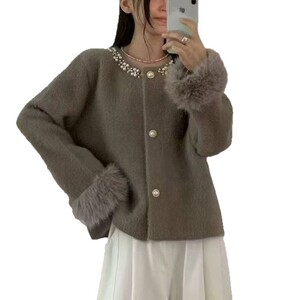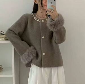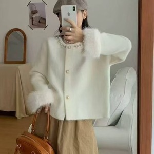 2025新款欧货时尚别致仿貂毛重工订珠法式时尚针织女毛衣外套软糯