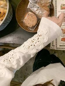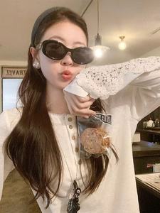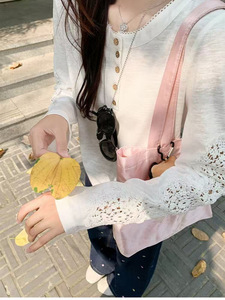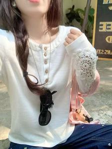 Z小咸 韩系白色镂空蕾丝长袖t恤女早秋季修身内搭打底衫外穿上衣