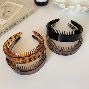 韩版新款豹纹防滑女发箍简约高颅顶压发头箍带齿时尚洗脸外出发箍