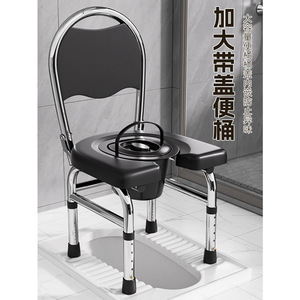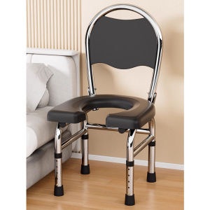 【黑色】35-45cm可升降带靠背款加厚不锈钢【赠坐垫+便桶】