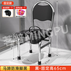 【黑色】30cm固定带靠背款加厚不锈钢【赠坐垫+便桶】