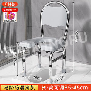 【灰色】35-45cm可升降带靠背款加厚不锈钢【赠坐垫+便桶】