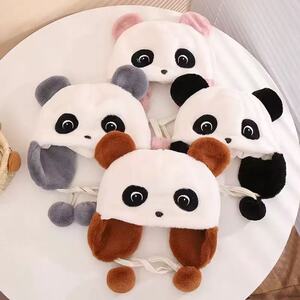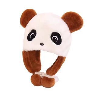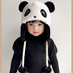 儿童帽子冬天可爱卡通熊猫毛绒帽宝宝包头帽男女童加厚保暖护耳帽
