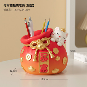 创意可爱招财猫笔筒摆件办公室工位桌面装饰情绪稳定生日礼物实用