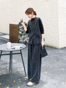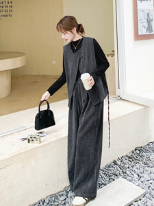 松弛感慵懒风三件套女2025秋季新款气质细带马甲打底衫阔腿裤套装