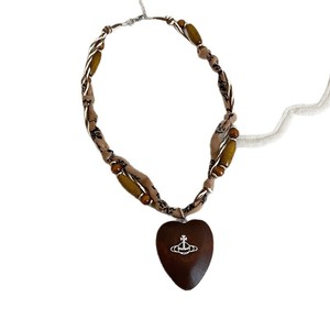 小众设计感木质大爱心吊坠项链文艺复古豹纹编绳锁骨链个性颈链女