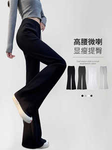 黑色运动卫裤女秋2025新款休闲阔腿提臀显瘦微喇裤小个子美式卫裤