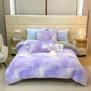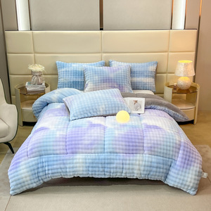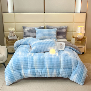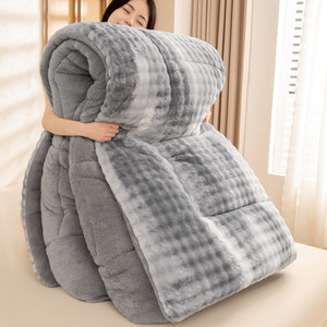 新款兔毛绒被子羊羔绒冬季保暖绒双人被子加厚法兰绒被芯冬被外贸