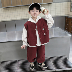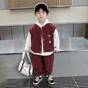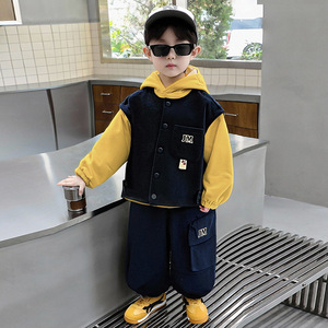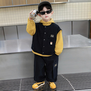 男童2025新款秋装套装帅气宝宝马甲三件套韩版卫衣春秋款儿童衣服