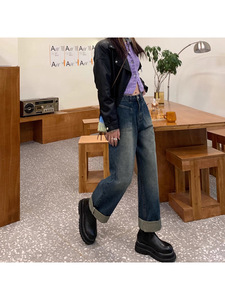 胖妹妹阔腿裤子2025年新款宽松显瘦大码春秋复古直筒高腰牛仔裤女