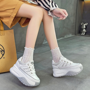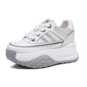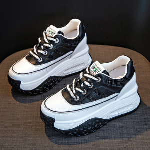 2025秋新款真皮百搭松糕9CM厚底休闲运动鞋内增高老爹鞋女小白鞋