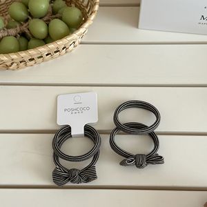 扎的牢~2根装韩版新款条纹蝴蝶结毛巾圈高弹力不伤发皮筋柔软发绳