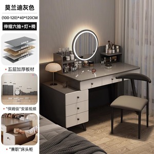 【六抽款+边柜+LED智能镜+梳妆椅】100-120cm莫兰迪灰色