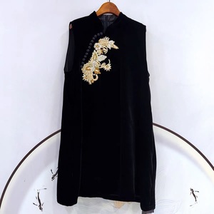 南油批发2025年夏季新款休闲文艺时尚真丝丝绒重工珠绣国风连衣裙