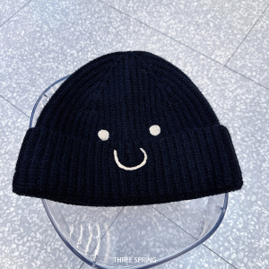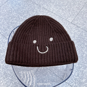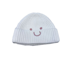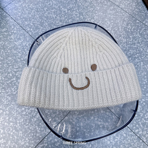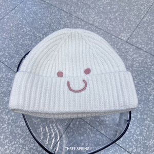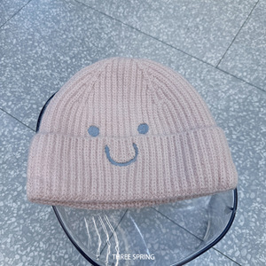 批发韩国2025年新款纯色翻边笑脸刺绣针织帽休闲百搭显脸小毛线帽