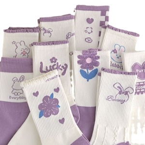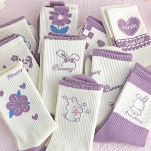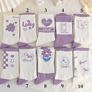 新款白色袜子女中筒高颜值紫色森系春秋冬百搭长筒学生运动袜批发