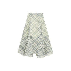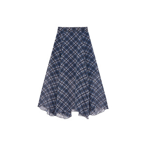 你好卡农 不对称斜裁格纹半身裙女夏季新款设计感高腰a字格子长裙