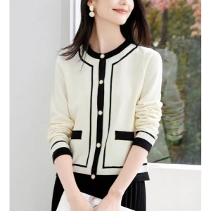 小香风撞色针织衫开衫女2025秋冬新款法式高级感内搭毛衣外套上衣