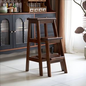 包邮/送货上门/免安装-三层胡桃色橡胶木抽拉梯凳【整装发货】