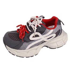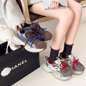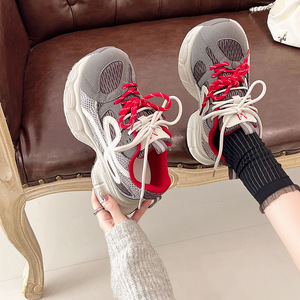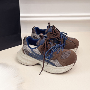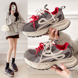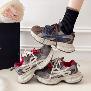 欧货厚底网面软皮老爹鞋女2025秋新款系带增高轻便舒适运动休闲鞋